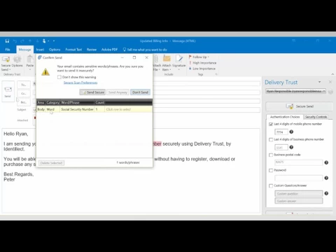 Delivery Trust integrates seamlessly with your existing email and allows for customizable security settings from both a user and organization level, all at the click of a button. Leverage the additional capability of the Secure Scan add-on which detects sensitive information based on your organizational needs and automatically encrypts when necessary.